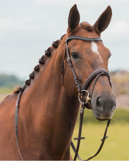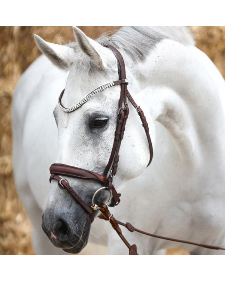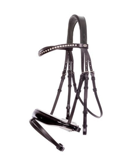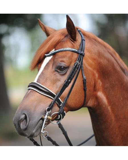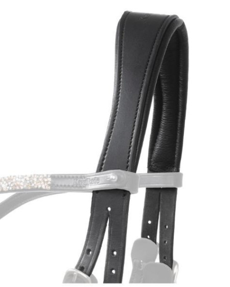 Luxe hoofdstel, voorzien van extra zachte padding onder het kopstuk en de neusriem. Met chique frontriem met kristallen. Anatomisch gevormd kopstuk.
