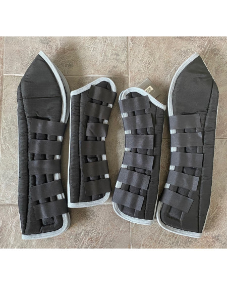 Gemaakt van scheurvast materiaal en een stabiele schuimrubberen inleg. De binnenvoering is een mix van katoen en polyester. De vier klittenbandsluitingen bieden voldoende verstelmogelijkheden. Door het omnaaien van het klittenband aan de voorkant, kunnen de sluitingen eenvoudig worden geopend.