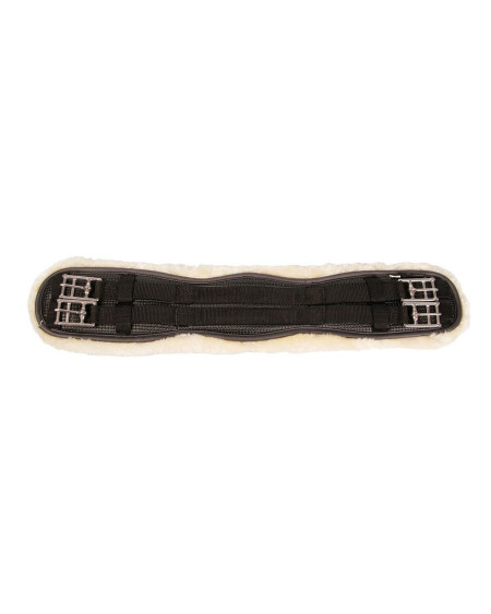 Horka Leren Dressuursingel met afneembare Schapenvacht Padding, Zwart/Natuur