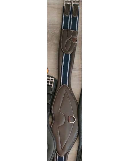 Anatomisch gevormde leren singel voor een dressuur zadel, gevoerd met schapenvacht.
