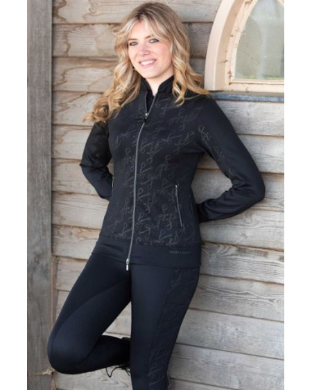 Mooie slankvallende 3tone gebreide trui van Mountain Horse, model Denver. Voorzien van raglan mouw en aan de zijkant gebreide streep met de tekst Mountain Horse.