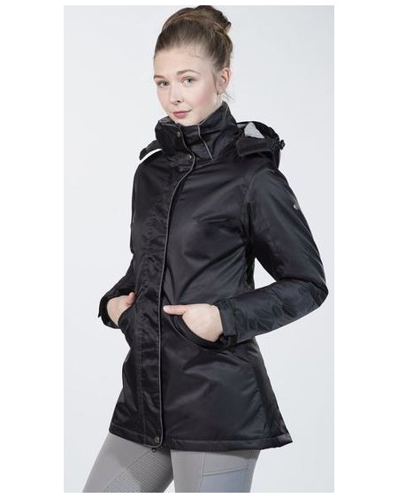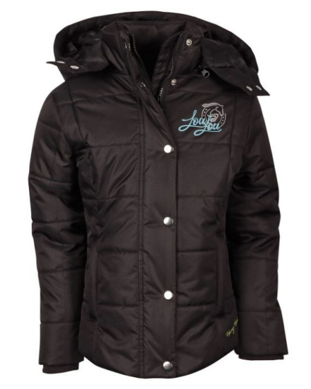 Leuk 2-zijdig draagbaar Harry's Horse Youngstars kinderjack, maat 164 (valt als 152). Buitenzijde donkerblauw met oranje en witte biesjes, stof bedrukt met kleine lichtblauwe plus-tekentjes. Binnenzijde oranje jerseystof met geborduurd Youngstars logo. Jas heeft geen vulling. Afneembare capuchon.