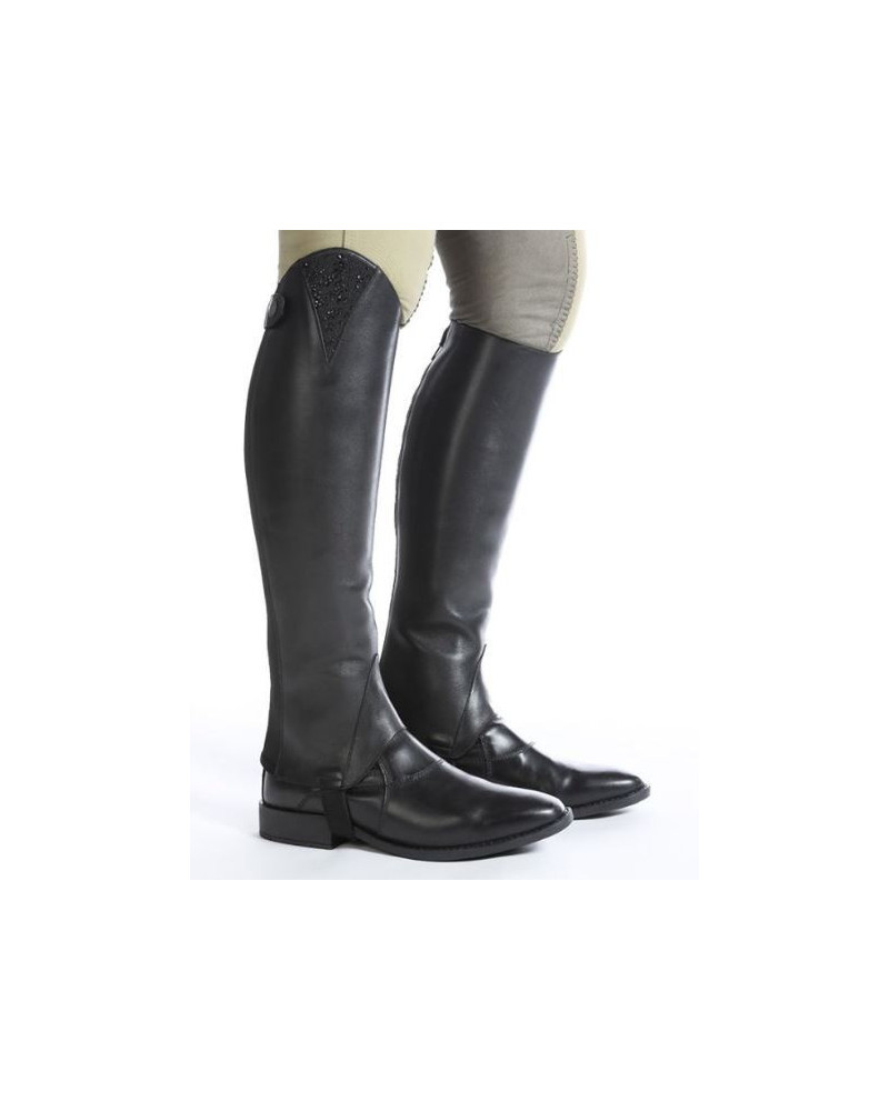 QHP amara suedine kinderchaps in de kleuren zwart-kobaltblauw. Voorzien van rits aan zijkant...