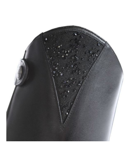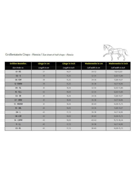 Amara minichap met elastisch kuitgedeelte en rits aan de buitenzijde.