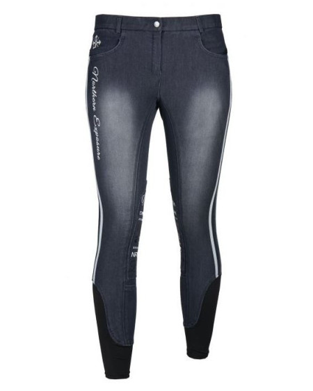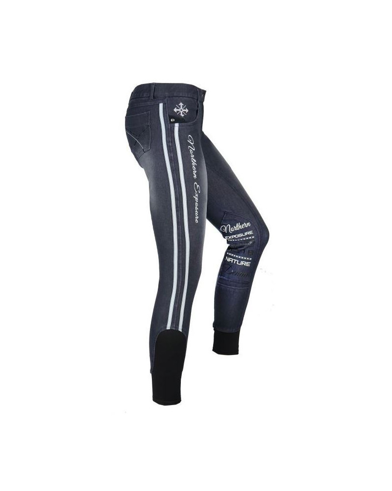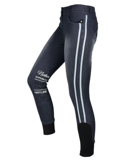 Mooie Harry's Horse rijbroek Melee, gemeleerde jeanslook met contraststiksels. Kunstleren...