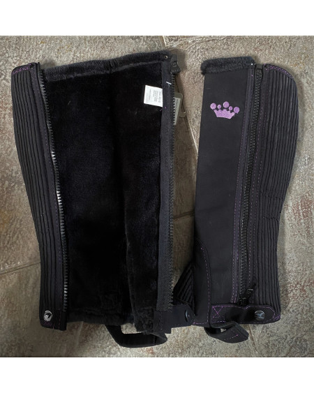 QHP amara suedine kinderchaps in de kleuren zwart-kobaltblauw. Voorzien van rits aan zijkant...