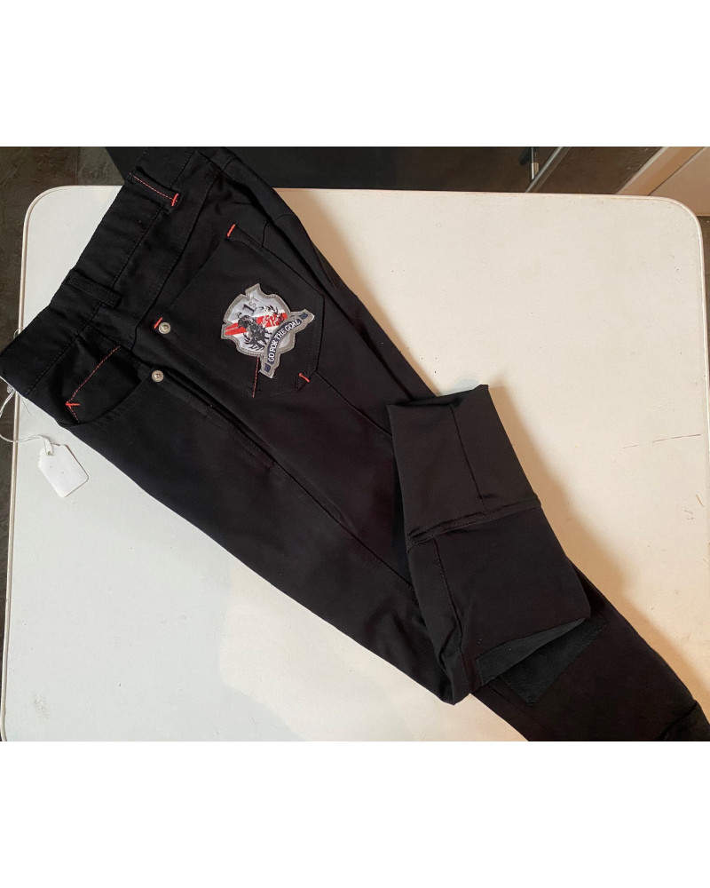 Rijbroek met zilveren contrasterende stiksels en diamanten op...