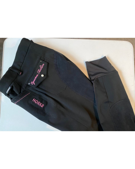 Horka rijbroek met zwart stoffen zitvlak, zwarte kunstleren kniestukken met contrasterende...