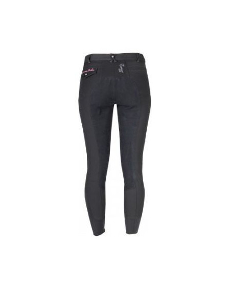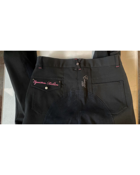 Rijbroek met zilveren contrasterende stiksels en diamanten op...