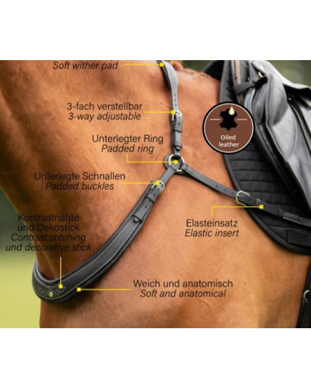 - Kavalkade leren borsttuig "Diandro", 3-punts diep